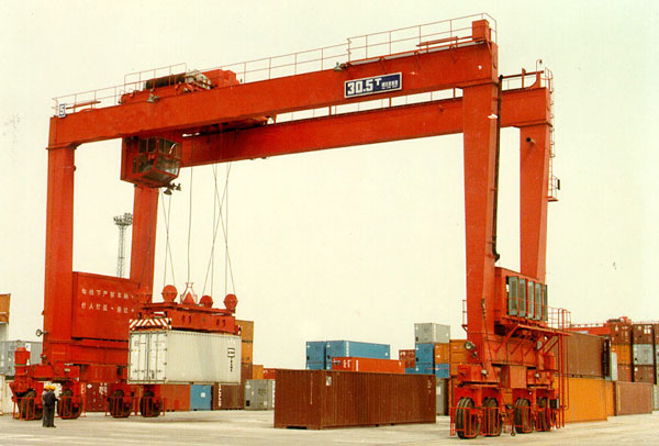 運到堆場或后方后,由集裝箱龍門起重機堆碼起來或直接裝車運走,可加快集裝箱運載橋或其他起重機的周轉。可堆放高3~4層、寬6排的集裝箱的堆場,一般用輪胎式,也有用有軌式的。集裝箱龍門起重機與集裝箱跨車相比,它的跨度和門架兩側的高度都較大。為適應港口碼頭的運輸需要,這種起重機的工作級別較高。起升速度為8~10米/分;跨度根據需要跨越的集裝箱排數來決定,*大為60米左右相應于20英尺、30英尺、40英尺長集裝箱的起重量分別約為20噸、25噸和30噸。